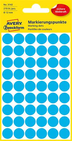 Etikety, okrúhle, priemer: 12 mm, AVERY ZWECKFORM, modré, 270 etikiet/bal