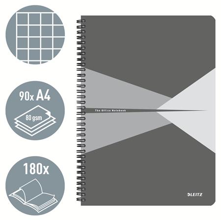 Blok, A4, štvorčekový, 90 listov, laminovaná kartónová obálka, LEITZ "Office", sivá