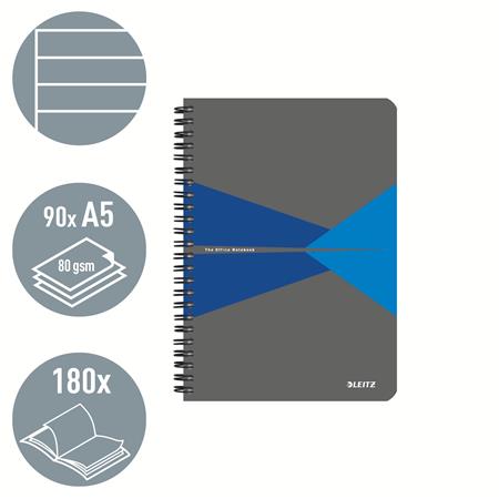 Blok, A5, linajkový, 90 listov, PP obálka, LEITZ "Office", sivá-modrá