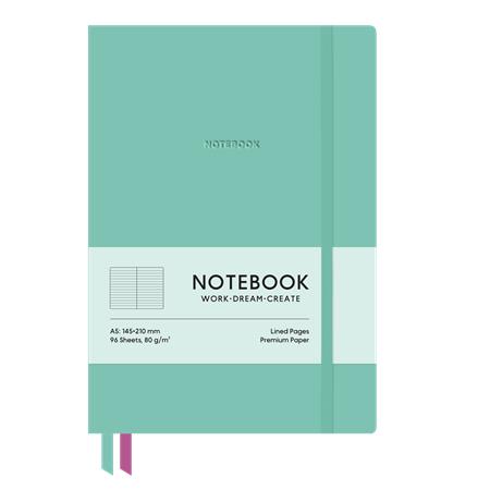 - formát A5 - uzatvárateľný na gumičku - textilná záložka v dvoch farbách - 96 listov - linajkový - papier krémovej farby - 80 g/m2