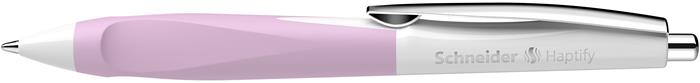 Guľôčkové pero, 0,5 mm, stláčací mechanizmus, biele-ružové telo, SCHNEIDER "Haptify", modré