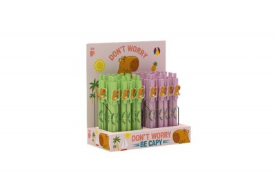 Guľôčkové pero, displej, 0,8 mm, stláčací mechanizmus, mix, ICO "Capybara", modré