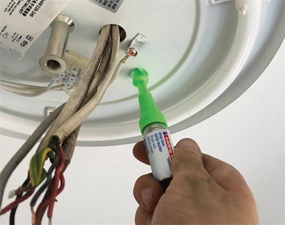 Tekutý kriedový sprej s patentovaným pumpovým mechanizmom pre nepermanentné značenie na ťažko dostupných miestach, takmer na všetky materiály. - jedinečne tvarovaná tryska umožňuje značenie otvorov s hĺbkou 50 mm a priemerom 3-13 mm - možno ju použiť z akéhokoľvek uhla a výšky, dokonca aj nad hlavou - nepermanentnú tekutú kriedu možno ľahko zotrieť z nesavých povrchov pre rýchle opravy - farba: neónovo zelená
