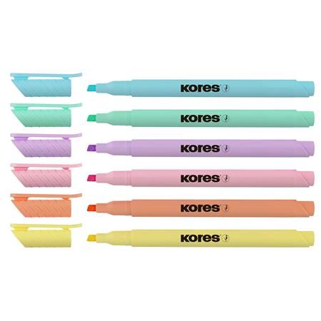 Zvýrazňovač, sada, 0,5-5 mm, KORES, 6 rôznych pastelových farieb