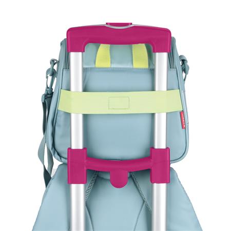 možno pripevniť na výsuvnú rukoväť kolieskových školských tašiek