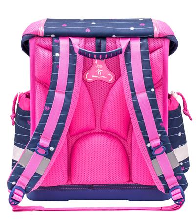 Ergonomický dizajn: -Ergonomicky tvarovaná školská taška s priedušným, polstrovaným chrbtovým systémom, ktorý zabezpečuje maximálne pohodlie a pomáha predchádzať bolestiam chrbta. Ergonomickú vhodnosť potvrdzuje aj certifikát nemeckého inštitútu AGR. Nastaviteľné popruhy: -odnímateľný a nastaviteľný hrudný popruh, nastaviteľné ramenné popruhy pre dokonalé prispôsobenie -stabilné a pohodlné nosenie -polstrované ramenné popruhy v tvare S, prispôsobiteľné postave dieťaťa, zabezpečujú optimálne usadenie a komfort pri nosení.  Premyslený vnútorný priestor: -tri priestranné vnútorné priehradky vhodné aj na zošity a knihy formátu A4, vďaka čomu majú všetky školské potreby svoje miesto – dve bočné vrecká na dáždnik alebo 0,7 l fľašu na vodu. Praktické bočné vrecká:Dve bočné vrecká sú ideálne na uloženie dáždnika alebo 0,7 l fľaše na vodu a umožňujú rýchly a jednoduchý prístup. Jednoducho ovládateľná pracka: -ľahko otvárateľná kovová pracka s reflexným prvkom, ktorý zvyšuje viditeľnosť a bezpečnosť dieťaťa v cestnej premávke.  Superľahká konštrukcia: -hmotnosť tašky je len 930–990 g, takže zbytočne nezaťažuje ramená ani chrbát dieťaťa. Európska výroba: Produkt je navrhnutý a vyrábaný rodinnou firmou v Európe už od roku 1965, čo zaručuje jeho vysokú kvalitu a spoľahlivosť. Ideálna voľba pre rodičov, ktorí kladú dôraz na ergonomickú, bezpečnú a ľahkú školskú tašku pre svoje dieťa.