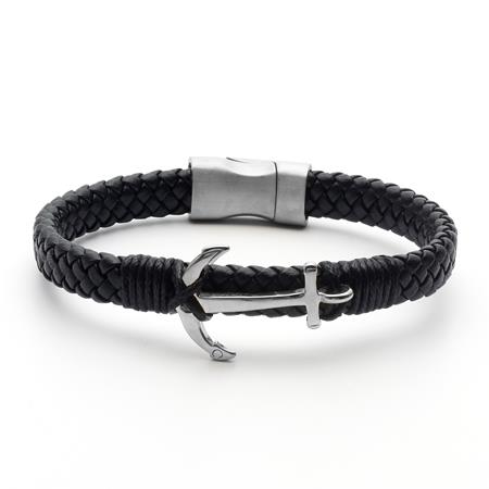 čierna pletená koža, strieborná kotva, s magnetickým zapínaním
